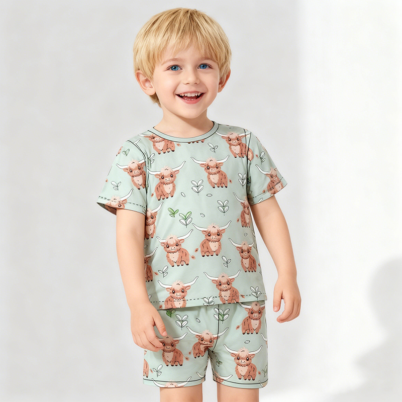 Baby Clothes Girls and Boys Customization Print Short Sleeve Summer Organic Bamboo Pyjama Cotton Baby Clothing Sets