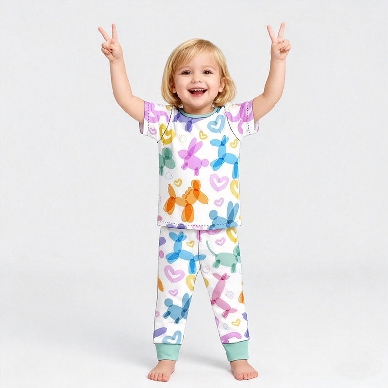 Baby Clothes Girls and Boys Customization Print Short Sleeve Summer Organic Bamboo Pyjama Cotton Baby Clothing Sets