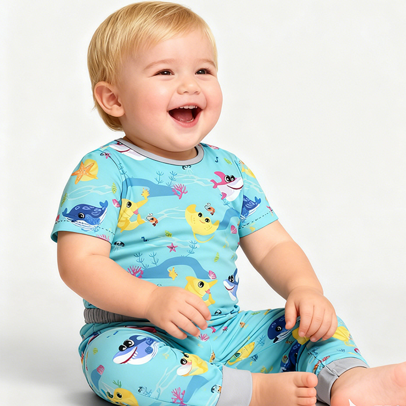 Bamboo Zipper Baby Jumpsuits Pajamas Set Boys Summer Short Sleeves Romper Pajamas Set Toddler Boy Rompers Wholesale