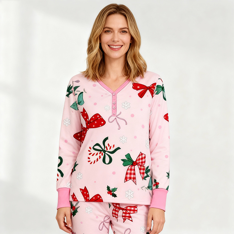 Custom Digital Print Bamboo Spandex Women’s Pyjamas Two Pieces Pajamas Clothes Sleepwear Pjs Set Family Clothing for Women Set