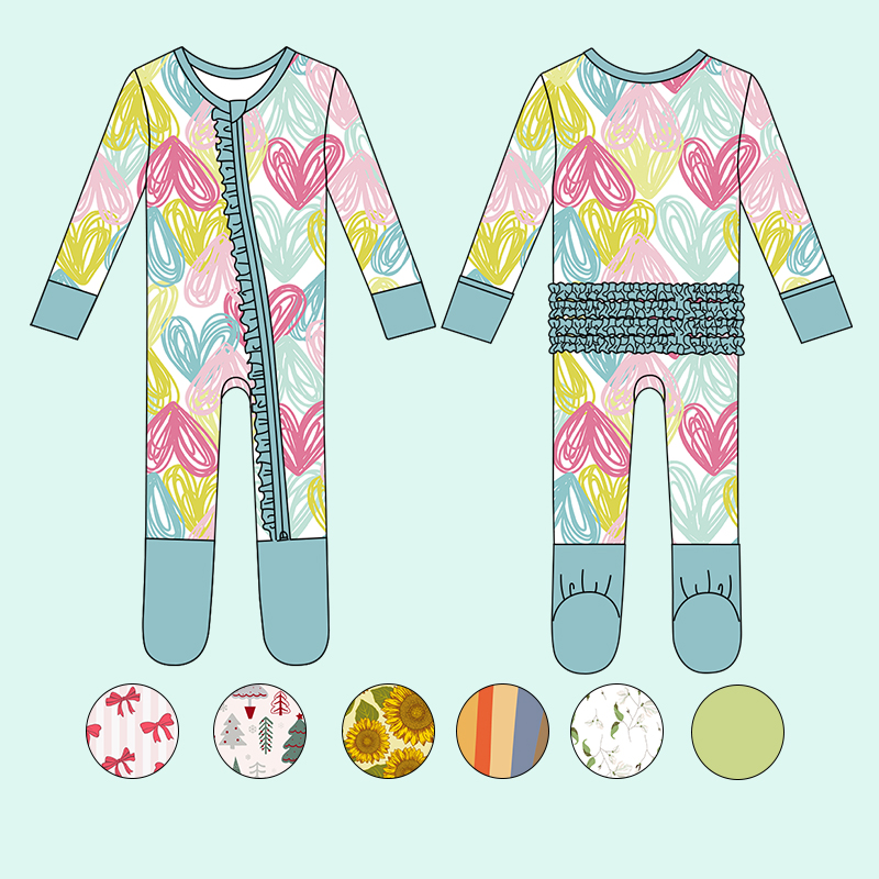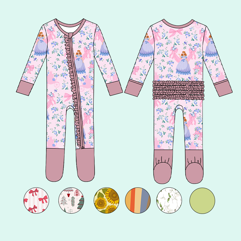 Custom High Quality Baby Clothes 95% Bamboo 5% Spandex Printed Zipper Rompers Printing Pajamas Baby Clothing Bamboo Pajama