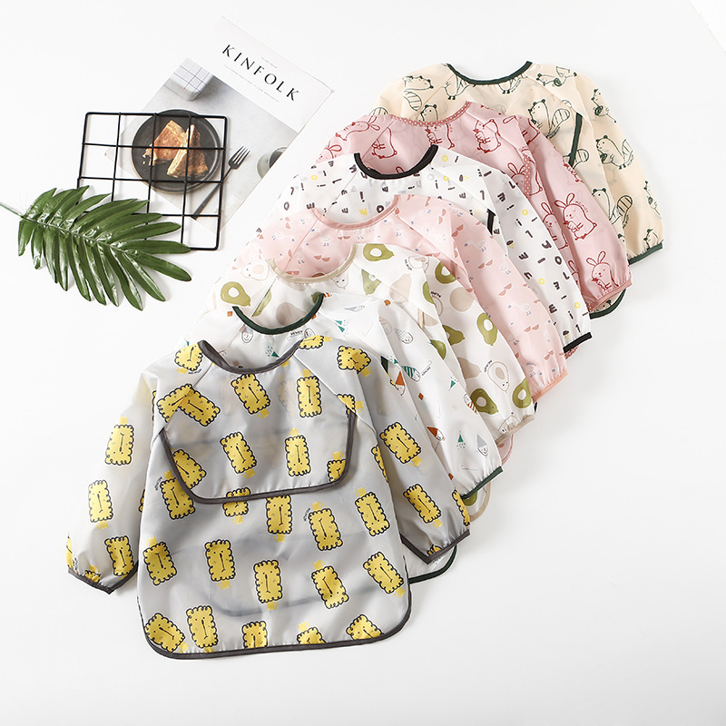 Custom Infant Weaning Feeding Waterproof Baby Smock Apron Bib Long Sleeve Baby Bibs With Pocket
