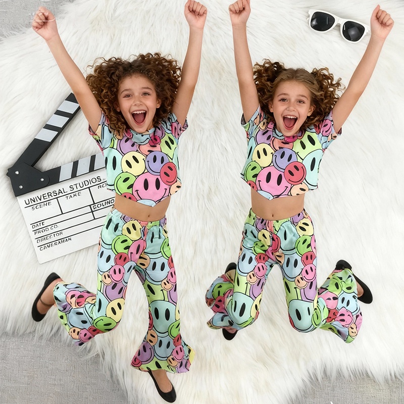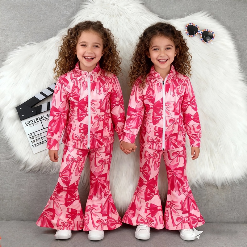 Custom Logo Kids Fitness Clothing Flare Pants Full Zip Jacket Gym Activewear 2 Piece Workout Yoga Suit Set for Girls