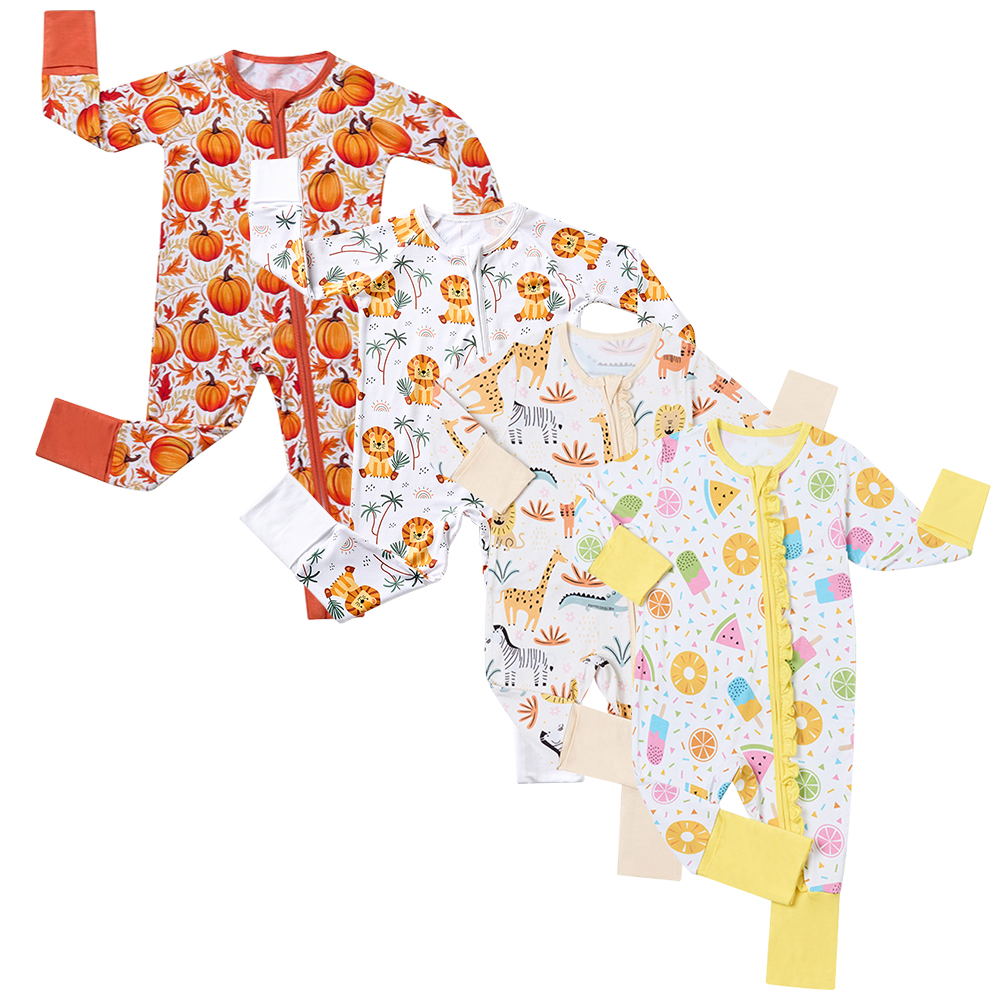 Customised Bamboo Baby Bodysuits Newborn Crawl Suit Zip up Cotton Long Kids Baby Romper Clothes Baby Girl Clothes