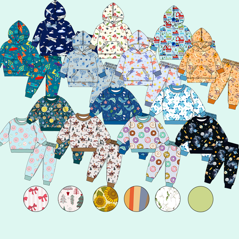 Hot Sale Baby Boys Hoodies and Joggers Set Casual Bamboo Cotton Clothes Halloween Two-piece Kids Pullover Hood Sweat Suit Set