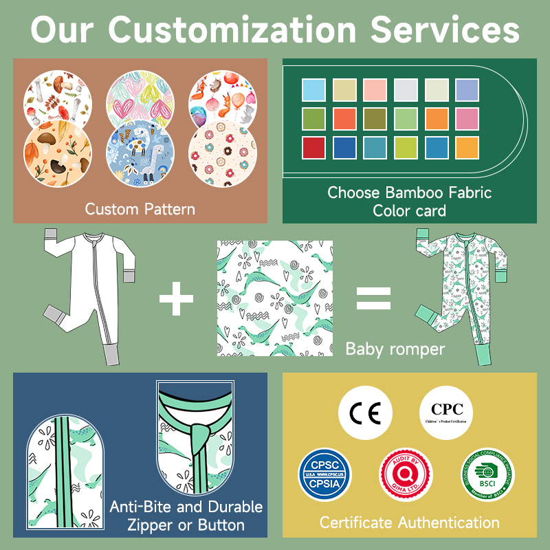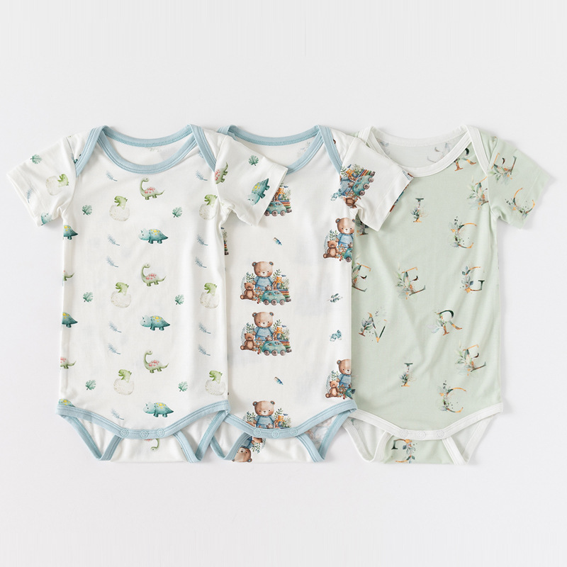 Hot Sale Custom Pattern 95% Bamboo 5% Spandex Baby Kids Girls Short Sleeves Zippy Romper Jumpsuit Bamboo Clothing