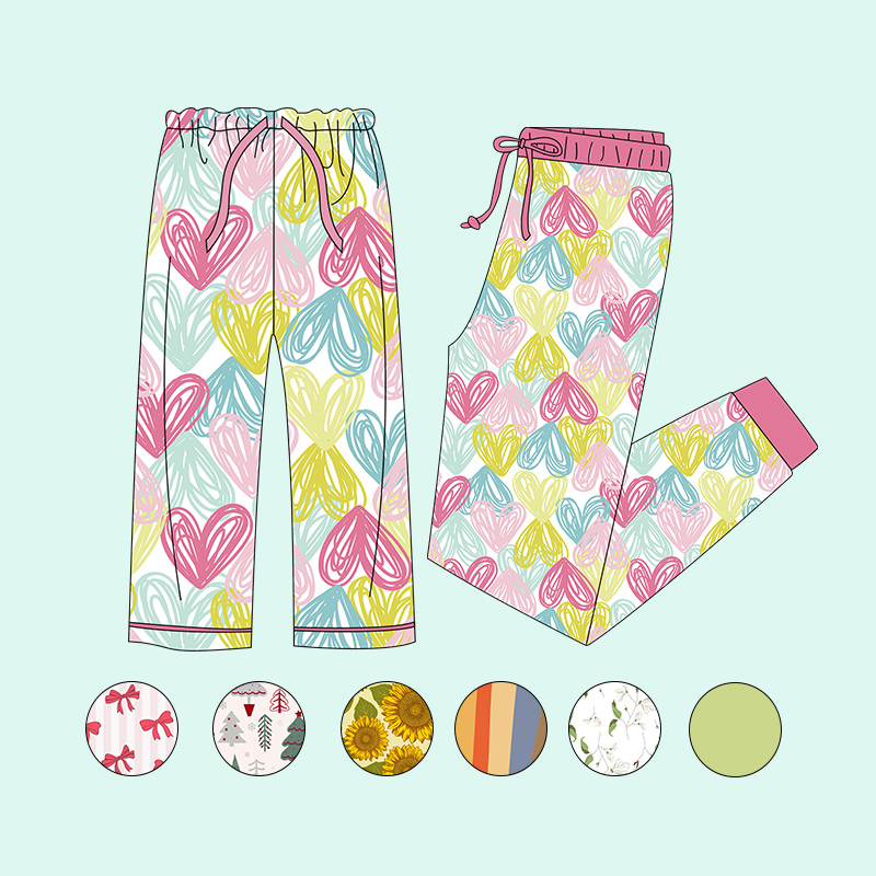 Kids 95%bamboo 5%spandex Christmas Sweet Mom and Girls Trousers Kids Girl Jogger Pants Casual Wear Pants With Drawstring