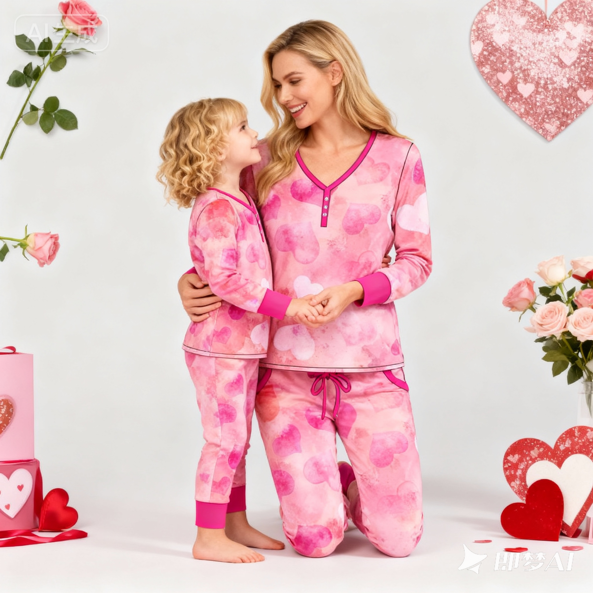 Manufacturer Custom Women’s Bamboo Cotton Printed Pattern Long Sleeve Loungewear Sleepwear Pajamas Set Two Piece for Family Set