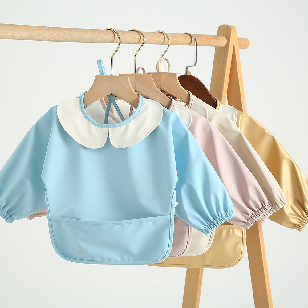 Natucare Bright Waterproof Baby Long Sleeve Bib Baby Apron with Round Tray