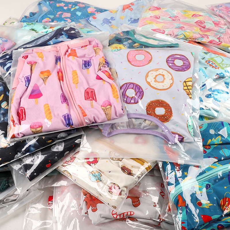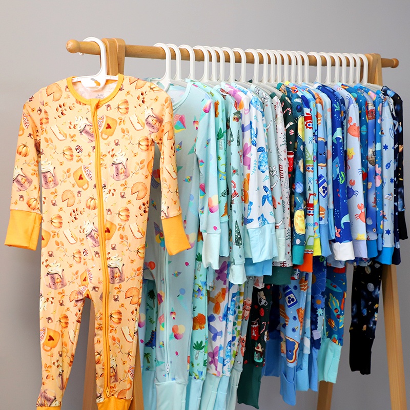New Style Fashion Bamboo Viscose Soft Random Size and Print Baby Zipper Wholesale Mestery Box Bamboo Baby Pajamas Set
