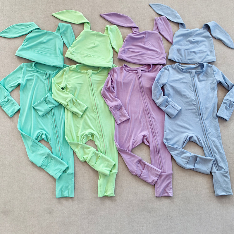 Oem Odm Bamboo Onesie Baby Newborn Infant Unisex Clothes Footie Pajama With Hat Baby Romper Set