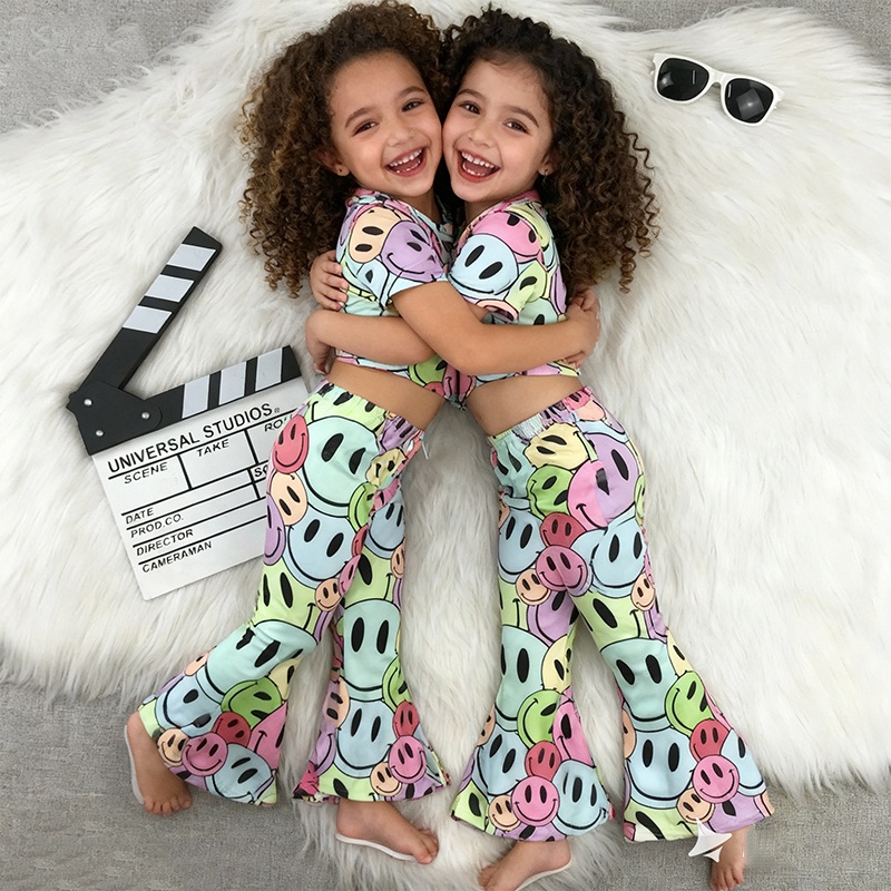Wholesale 0-16 Years Summer 2 Pieces Girls Short Sleeve Crop Top Matching High Waist Pants Winter Baby Clothes Set