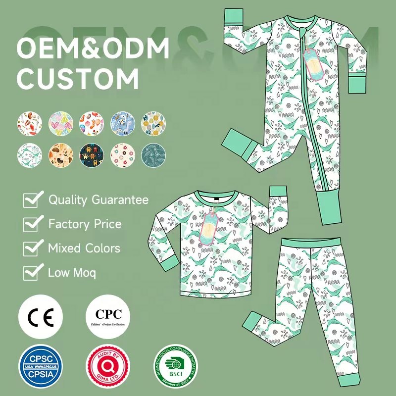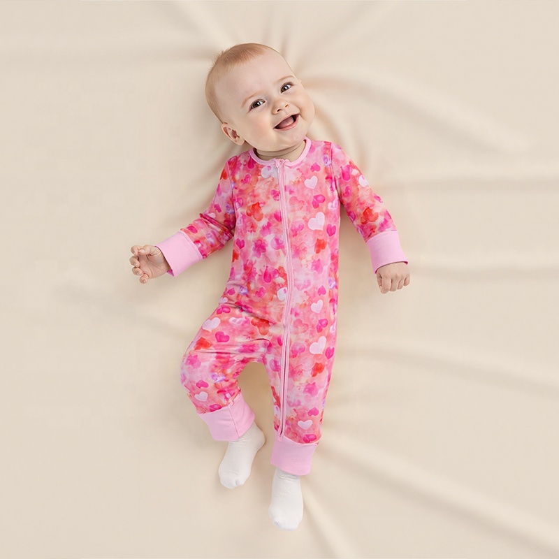 Wholesale Custom Stretchy Bamboo Baby Zip Romper Bamboo Pajamas 2 Way Zipper With Western Style