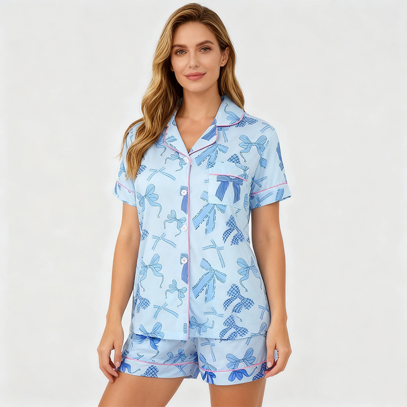 Wholesale Custom Valentine Printing Bamboo Pajamas Long Sleeves Casual Pajamas for Women Set New Design Family Women Sleepwear