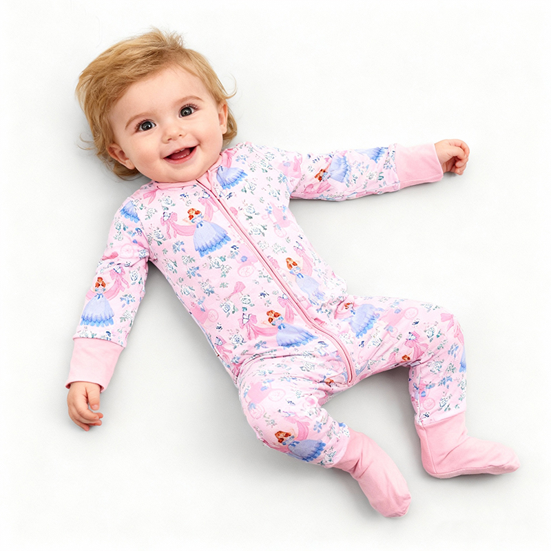 Wholesale Rts Baby Clothing Bamboo Pajamas Newborn Printed Sleeper Onesie Baby Boys Girls Jumpsuit Infants Zipper Romper